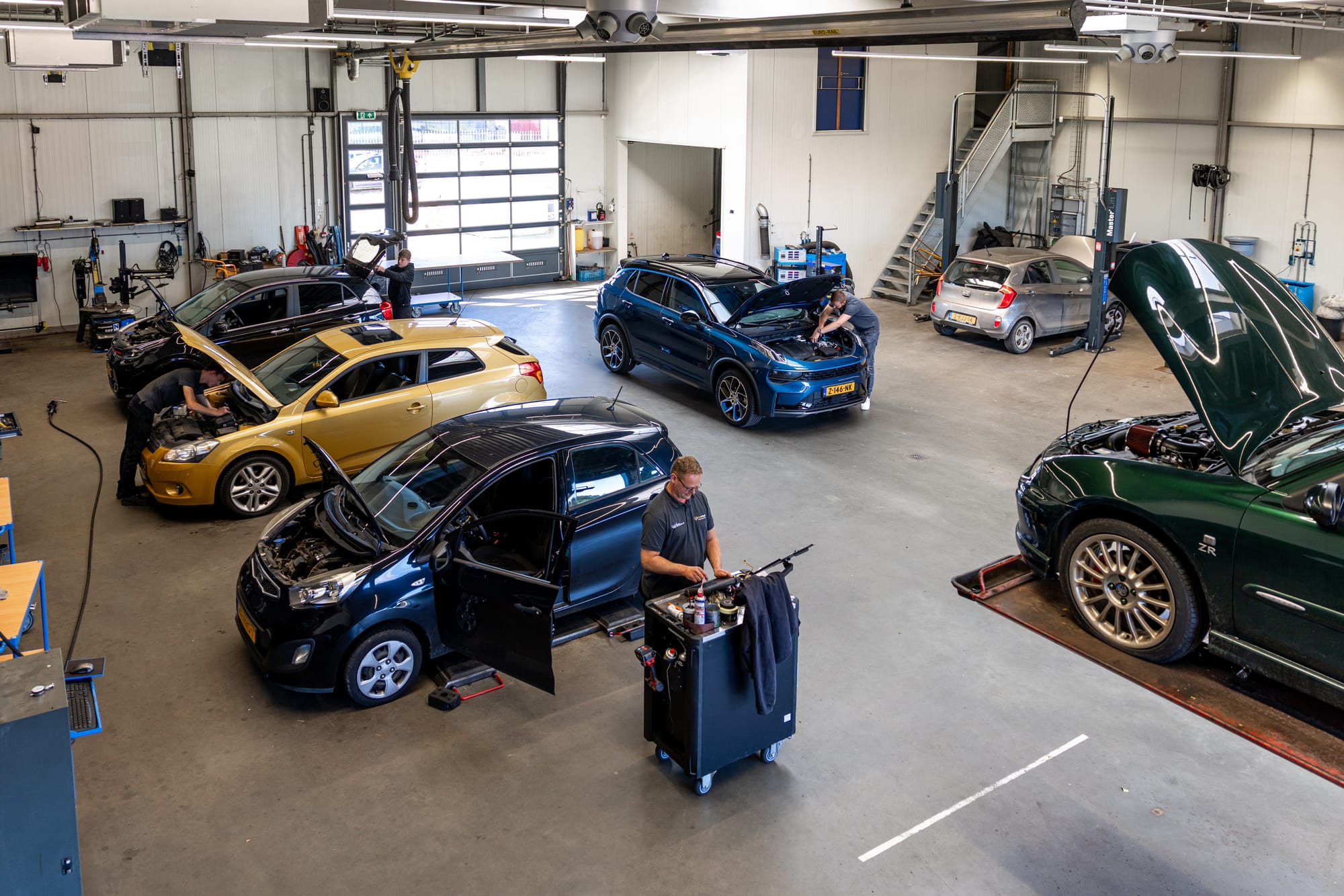 Nadat Kia in juli 2025 uit het familiepand was vertrokken, kon Weesepoel gaan verbouwen. Er werd veel aandacht besteed aan verduurzaming, onder meer met een uitgekiend koel- en verwarmingssysteem en een nieuw lichtplan in de showroom, gevoed door 110 zonnepanelen op het dak. Alle gereedschappen en apparatuur waren met het dealerschap vertrokken, dus dat moest nieuw aangeschaft worden. Weesepoel: “We hebben bij elke investering goed nagedacht. Wat zijn de kosten en hoe vaak gebruiken we het?” Dat leidde onder meer tot de keuze om geen uitlijnbank en deeltjesteller aan te schaffen. “Uitlijnen kunnen we hier vlakbij bij een collega laten doen. En we hebben maar weinig diesels in onderhoud, dus die deeltjesteller gebruiken we ook maar zelden.”