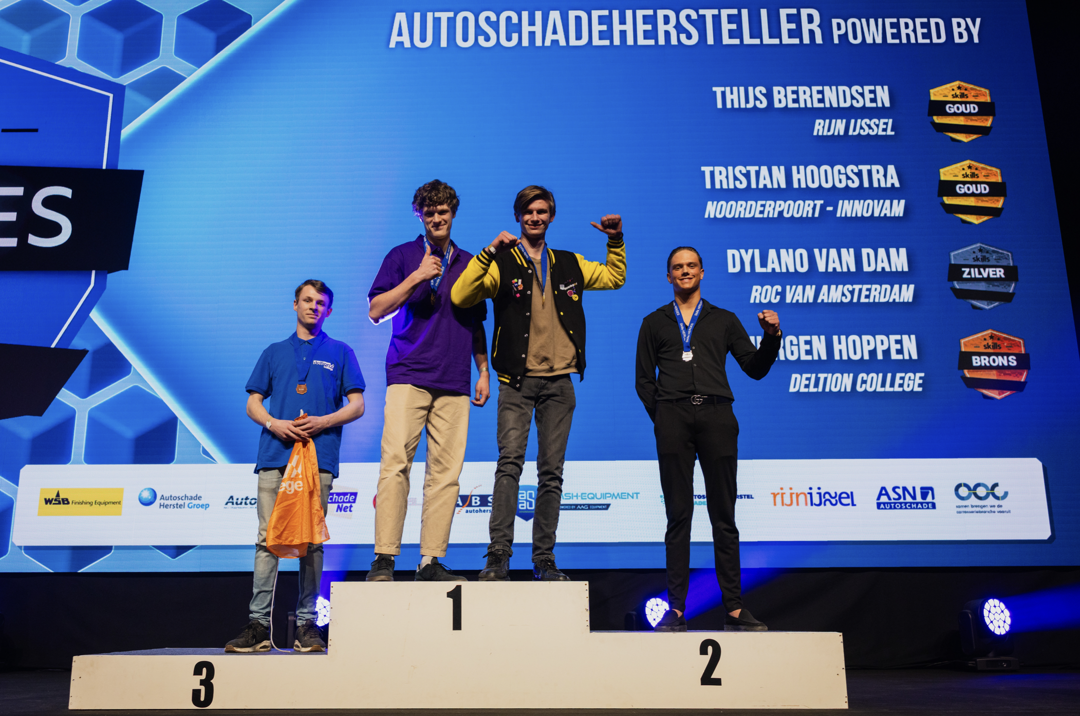In Autoschadeherstel eindigde Dylano van Dam van ROC van Amsterdam/NexTechnician en ASN Vermaire als tweede. Jurgen Hoppen van Deltion College en Roessink Richttechniek werd derde. In de categorie Autospuiten ging de tweede plaats naar Lith Alobid van Firda en Friesland Schade Herstel. Sam van der Meer van ROC Mondriaan en Autoschade Van Riel & Zn eindigde als derde.